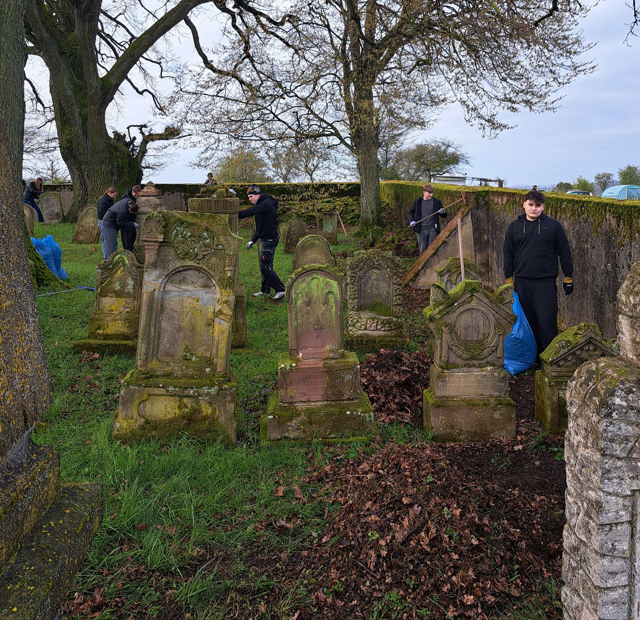 Mit großem Engagement reinigten sie den örtlichen jüdischen Friedhof in Waldwisse von Wildwuchs, Laub und hartnäckigen Ablagerungen.